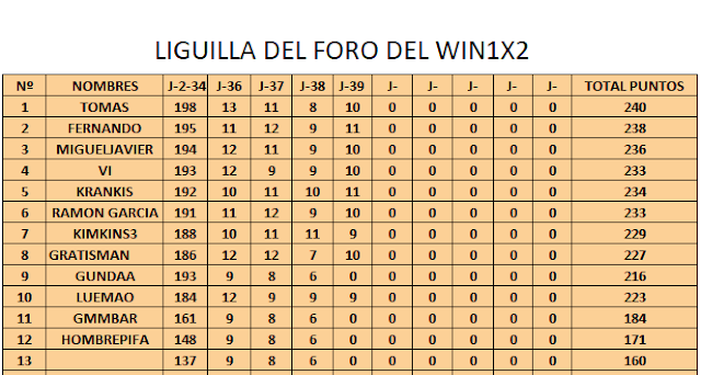 Resultado de la jornada 39ª de la liguilla de win1X2